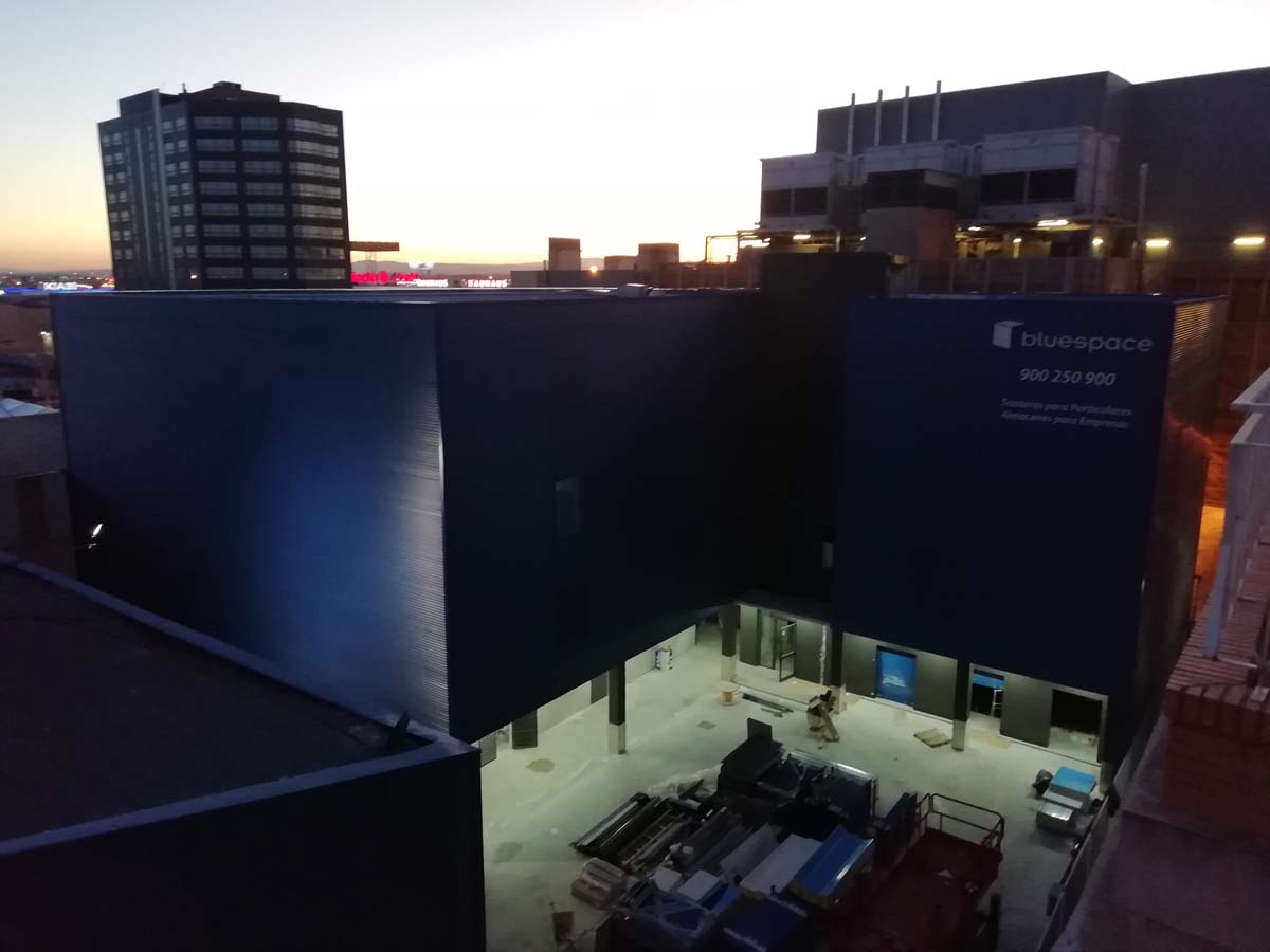 El espacio exterior se conforma mediante un patio de distribución, al que se accede directamente desde el pasillo de acceso, donde se prevé una zona de aparcamiento, carga y descarga a la vez y el acceso al edificio. Los frentes de fachada en la zona del patio en planta baja quedan porticados. Perimetralmente el edificio queda vallado y separado de los vecinos, siendo la altura media de la cerca de 2m, ejecutada como marca la normativa sobre un basamento macizo de fábrica de bloque prefabricado de hormigón de 1,00m y vallado metálico de 1,00m sobre el mismo.